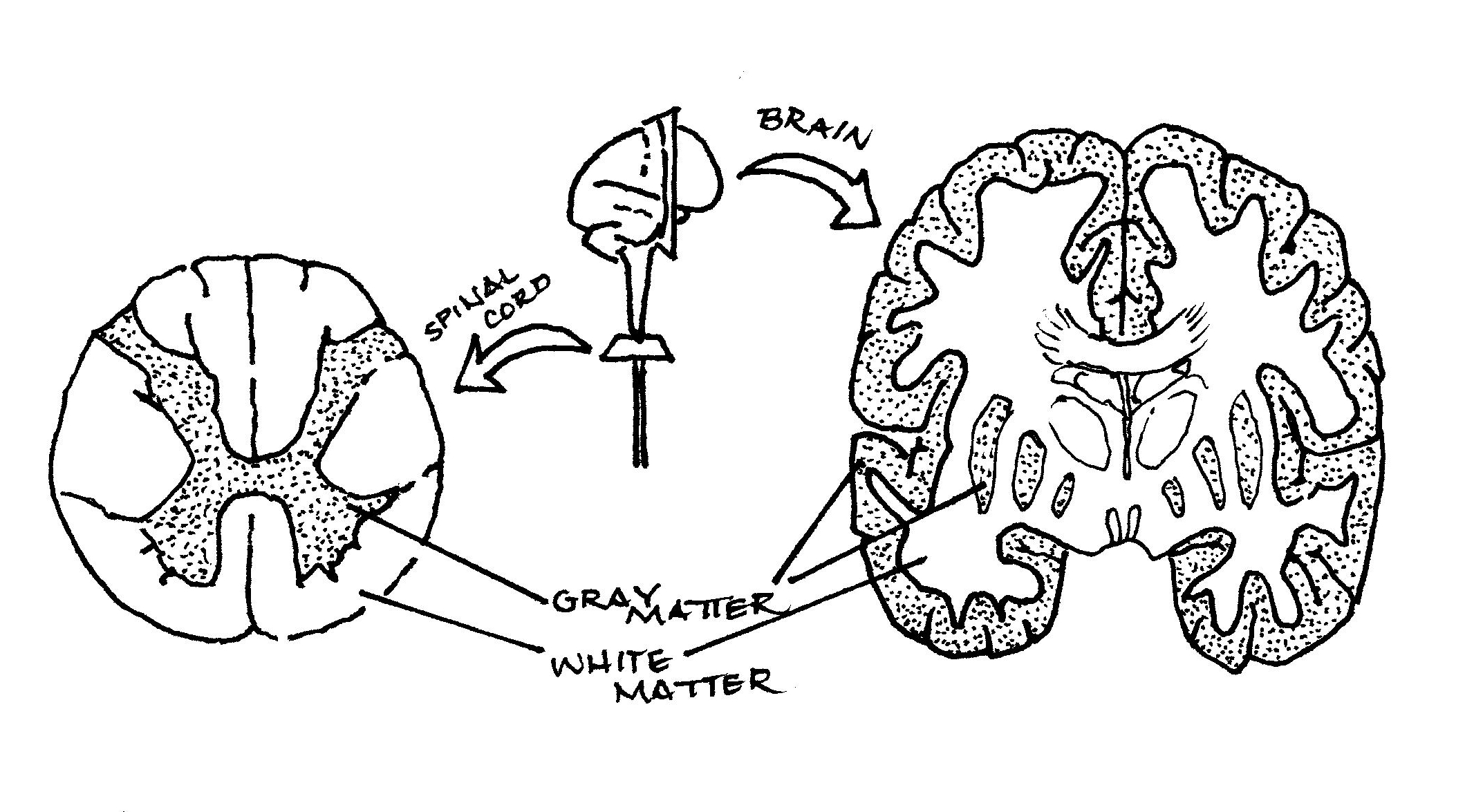 The central nervous system (CNS) is comprised of gray matter – mostly cell bodies – and white matter – mostly cell axons. Although the two “matters” look separate, they are unitary – continuous neurons. We think of the gray matter as being the outside of the brain, which it is, but it also exists in small islands inside the brain. Most people, if they’re honest about it, don’t think of the spinal cord as part of the CNS, but there the gray matter is primarily on the interior. Throughout the CNS, the gray matter is denser than the white matter. That becomes especially important when it comes to high-speed crashes.