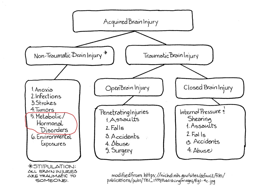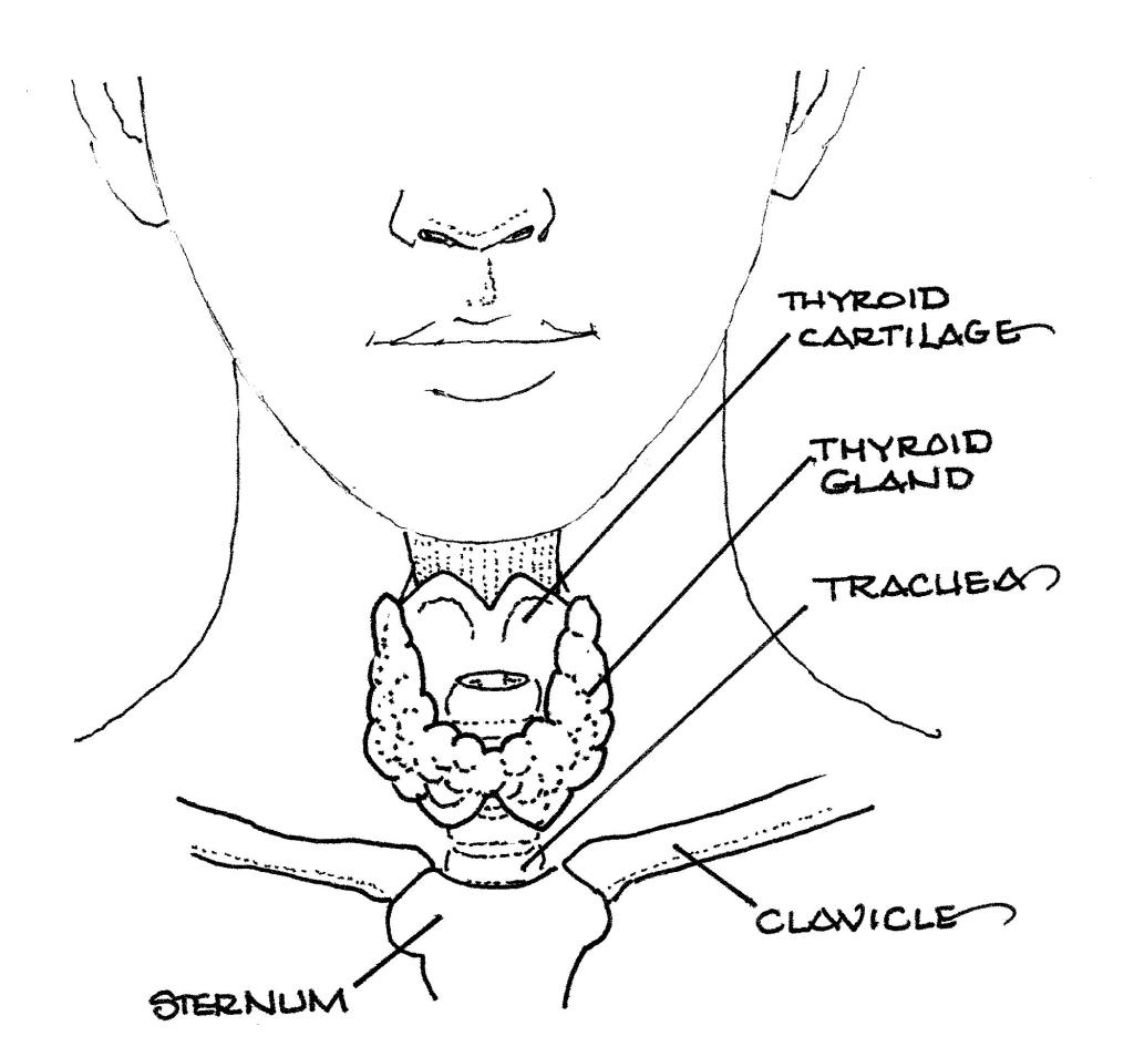 The thyroid is butterfly-shaped glandular tissue resting on the trachea in the lower front of the throat. It produces and secretes hormones that control the body’s metabolic rate – how efficiently the body transforms food into energy. Of course, all cells in the body require energy to function so the thyroid’s activity affects all aspects of health, especially all things having to do with the many functions of the brain. Hyperthyroidism is when the thyroid overproduces hormones; when there is under-production, it is called hypothyroidism. Either condition may cause the thyroid to become enlarged – a condition called a goiter.
